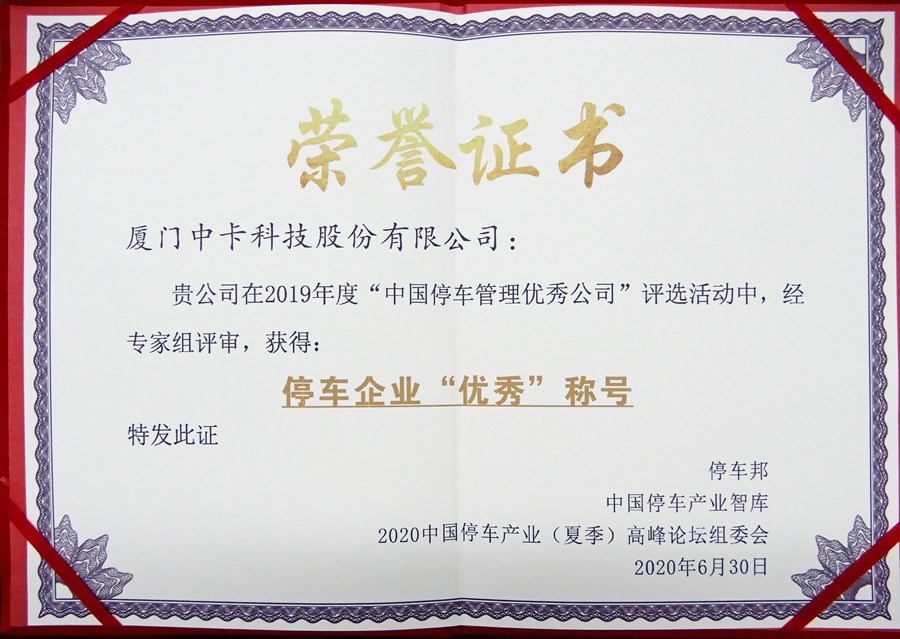 近日,2020中國停車產業(夏季)高峰論壇暨2019年度“中國停車管理優秀公司”頒獎典禮在青島隆重舉行。中卡科技股份有限公司(以下簡稱:中卡科技)憑借多年深耕城市級智慧停車領域的專業,榮獲2019年度停車企業“優秀”稱號。